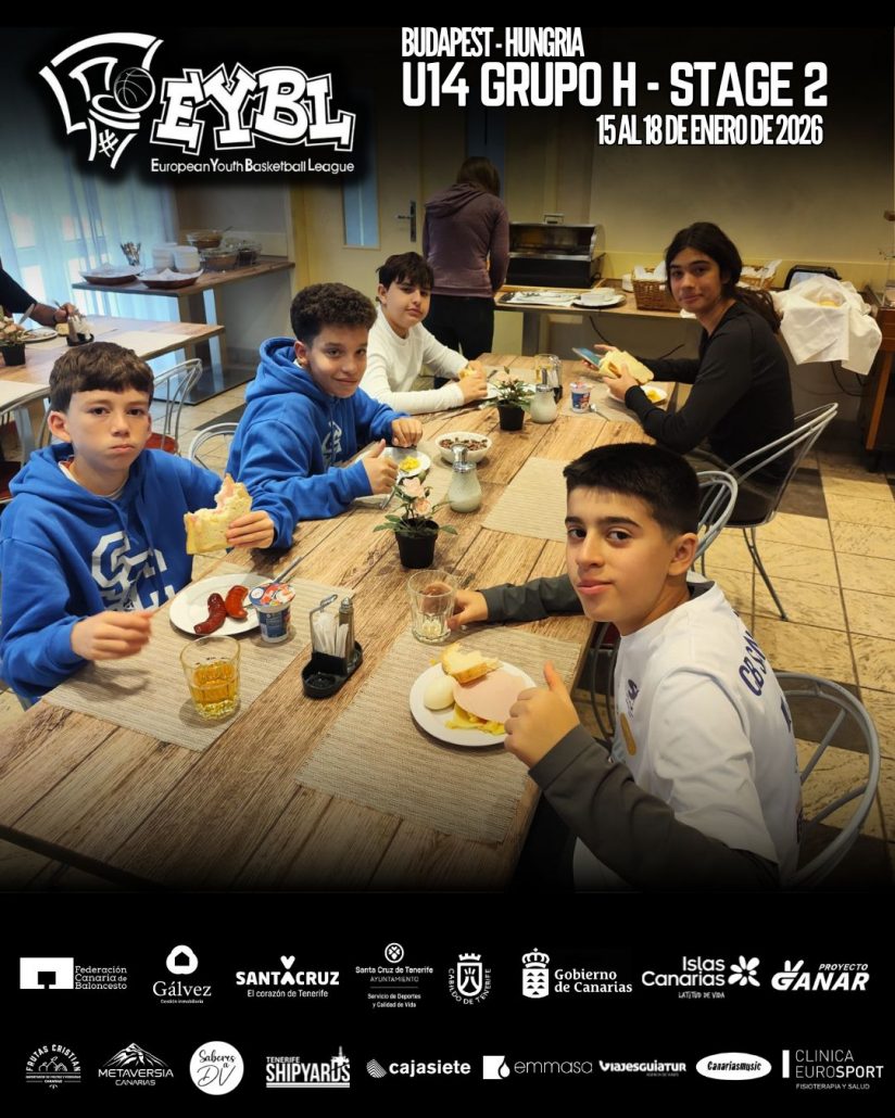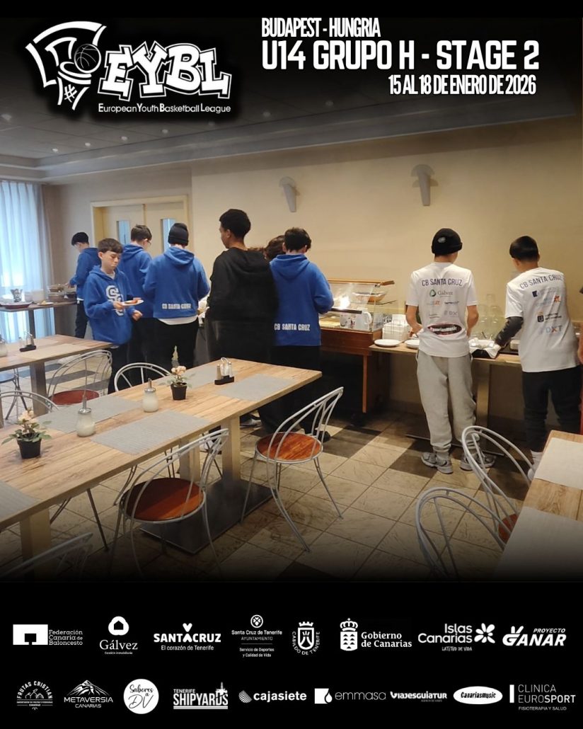 El equipo infantil Clínica Eurosport Santa Cruz U14 está participando en la segunda fase de la European Youth Basketball League (EYBL), que se celebra en Budapest (Hungría) del 15 al 18 de enero de 2026. Tras su paso por el primer stage de la competición, los jugadores afrontan nuevos desafíos enfrentándose a equipos de Suecia, Hungría, Austria y Ucrania, entre otros, en un torneo que combina nivel competitivo y experiencia internacional.